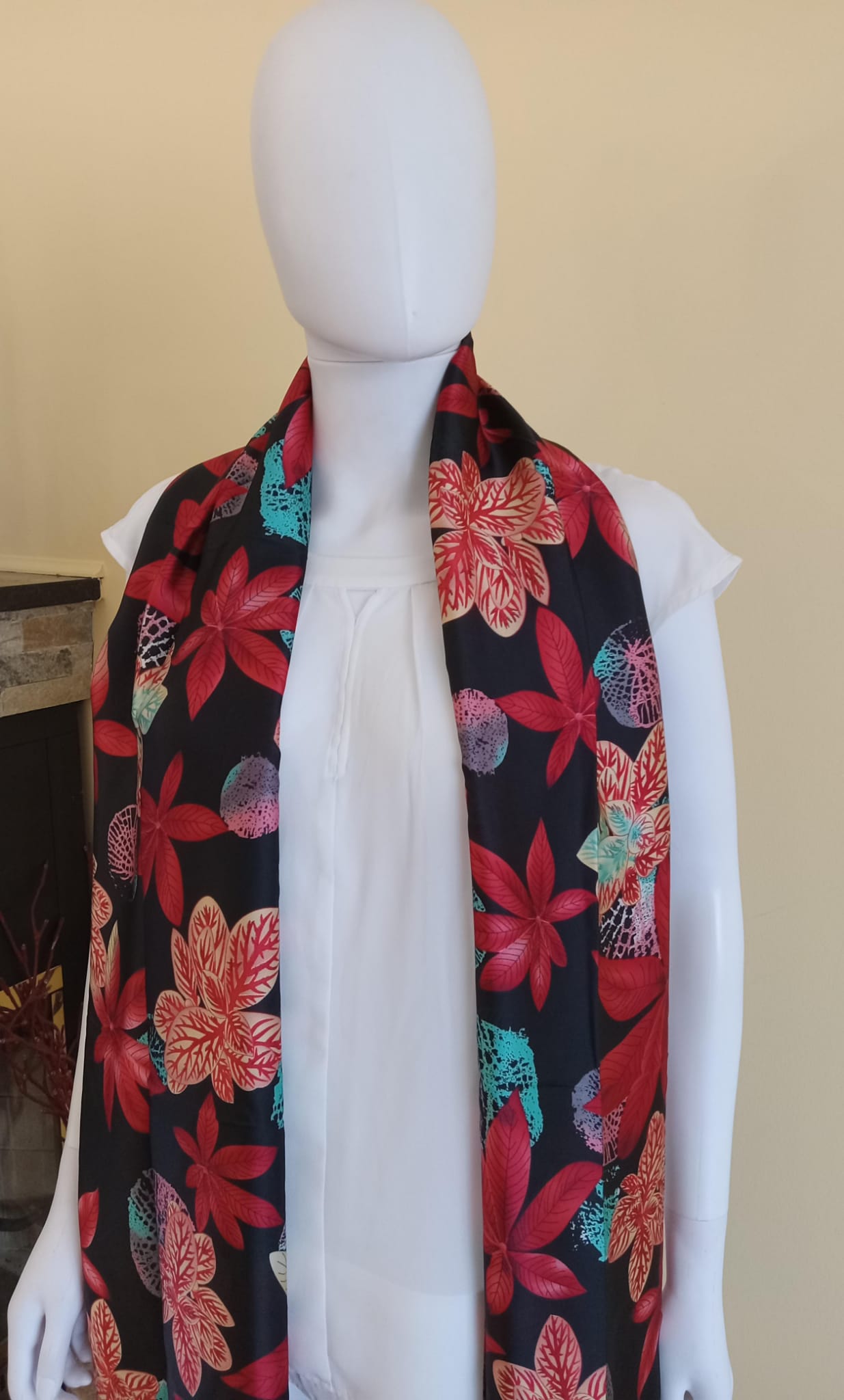 Découvrez notre écharpe  sous les tropiques, confectionnée avec de la soie et amour. Ajoutez une touche unique et élégante à votre tenue grâce à cette écharpe qui saura vous démarquer avec style. Un accessoire incontournable pour les amoureux de la mode.