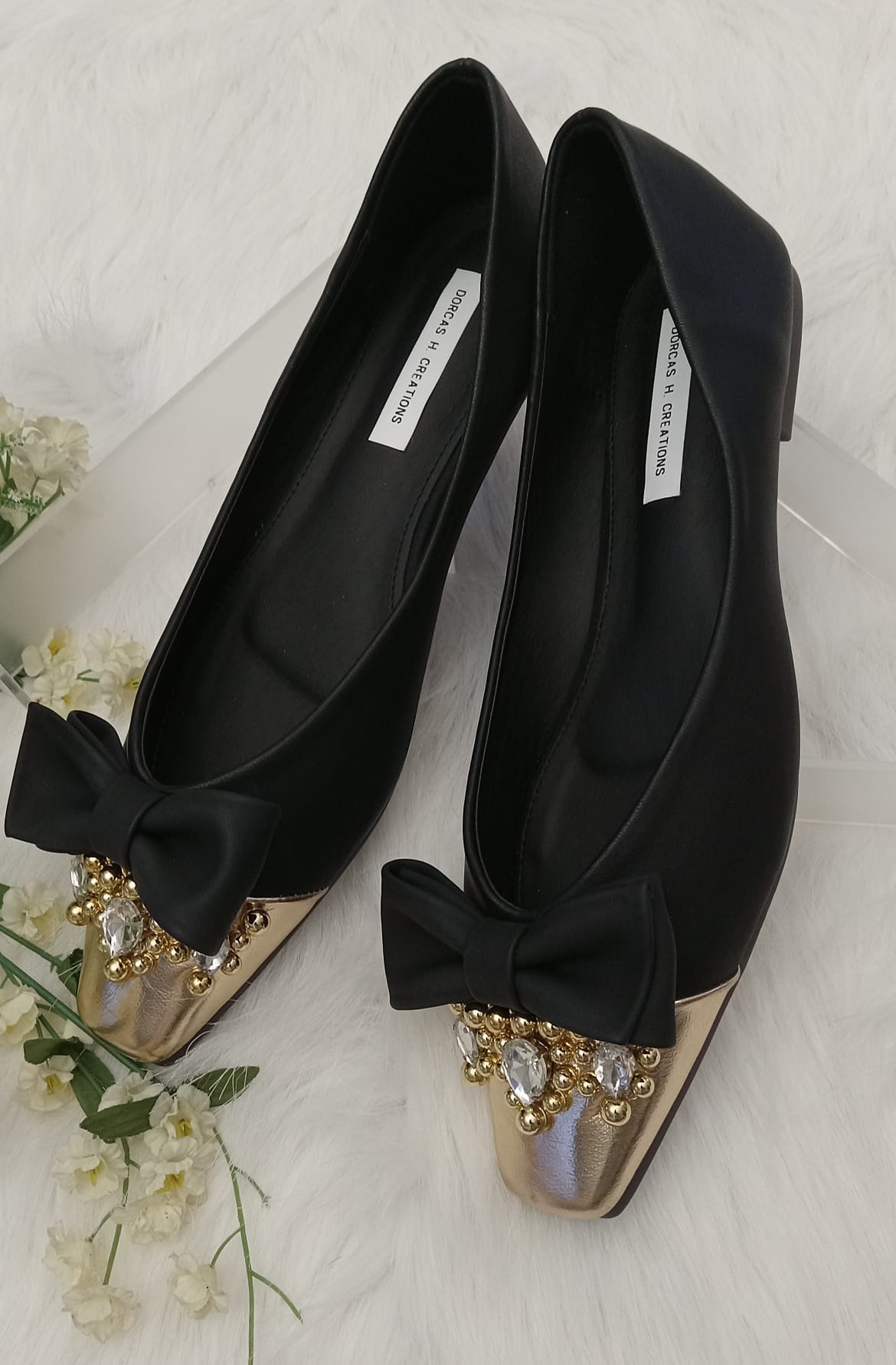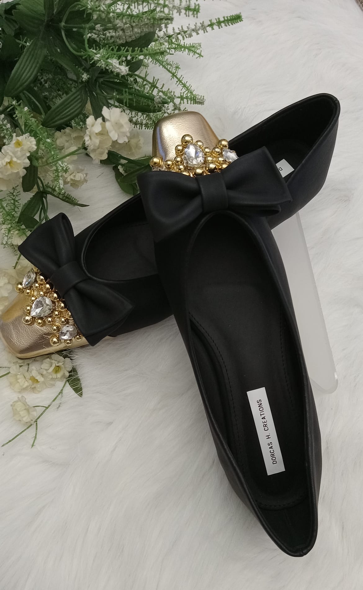 Élégante ballerine avec un nœud et pierres décoratifs . La touche d' élégance dans le look.