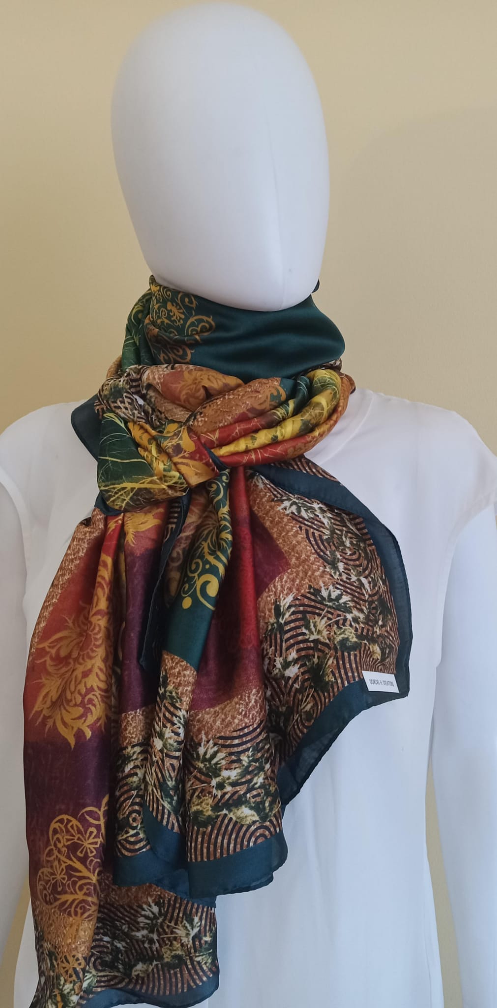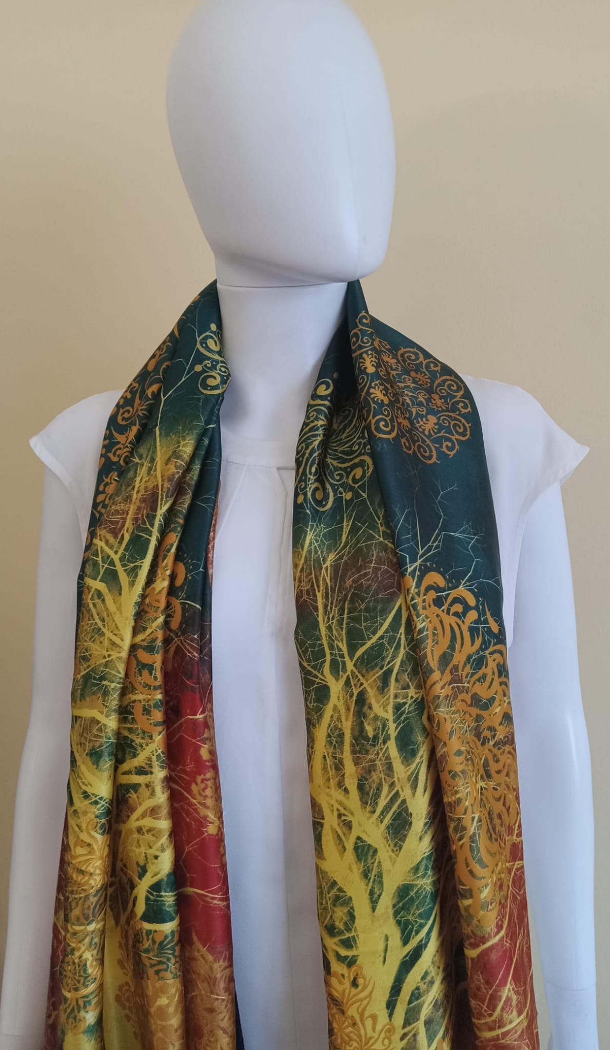 Découvrez notre écharpe  en soi , confectionnée avec de la soie et amour. Ajoutez une touche unique et élégante à votre tenue grâce à cette écharpe qui saura vous démarquer avec style. Un accessoire incontournable pour les amoureux de la mode.