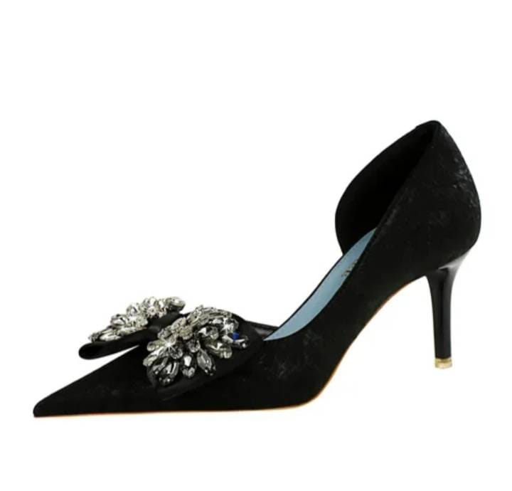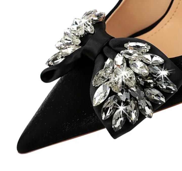 Escarpin de luxe pour vos événements ; ajoutez à votre garde robe cette magnifique chaussure noire classique décorée d'un nœud avec diamants. Une véritable merveille pour les amoureuses de mode .